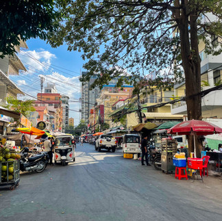 Da die Einreise über Land nach Kambodscha weiterhin nicht möglich ist, um die Grenzen während der Pandemie besser kontrollieren zu können, waren wir gezwungen von Thailand in das westlich angrenzende Nachbarland zu fliegen. Wir landeten, mit allem nötigen Papierkram gewappnet, in Kambodschas Hauptstadt Phnom Penh. Wie sich am Einreiseschalter heraus stellen sollte, war das Flughafenpersonal mit der Flut an Dokumenten sichtlich überfordert und es dauerte geschlagene zwei Stunden bis wir, inklusive negativem Schnelltest, das Flughafengebäude verlassen konnten und in einem Tuktuk auf der vollgestopften Hauptstraße in Richtung Stadtzentrum fuhren. Vier Nächte verbrachten wir in einem kleinen Hostel in einem der schöneren Stadtviertel von Phnom Penh. Am ersten Tag machten wir einen ausgiebigen Spaziergang vom Hostel aus, entlang der Flusspromenade des Mekong, vorbei am Königspalast und dem Nationalmuseum. In einem der hippen Cafés gönnten wir uns zwischendurch eine Abkühlung, denn während der Mittagsstunden wird es deutlich über 30°C heiß. Als Teil des ehemaligen "Französisch-Indochinas" ist auch heute noch der Einfluss der ehemaligen Kolonialmacht zu erkennen. Viele Schilder, Plakate und auch Speisekarten sind auf Französisch und Boulangerien locken einen mit Baguette und Croissants. Vor allem letztere nutzten wir genüsslich aus. Jeden Morgen machten wir uns über die Backwaren her, die man in der Qualität nur selten auf Reisen findet. Heutzutage unterstützt Frankreich Kambodscha in vielen Bereichen wie Gesundheit, Bildung und Wirtschaft. Überhaupt zeugen die vielen Baustellen von Bürogebäuden und Wolkenkratzern davon, dass Kambodschas Wirtschaft eine der am schnellsten wachsenden im asiatischen Raum ist.