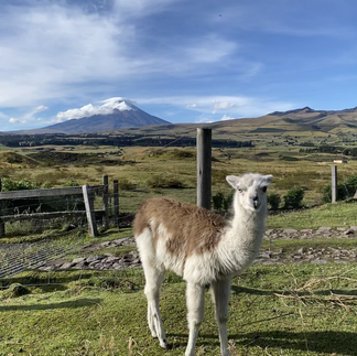 Zurück in der Lodge wartete ein weiterer Höhepunkt auf uns: in der Küche stand ein Eimer mit Bananenschalen bereit, um die Alpakas der Lodge damit zu füttern. Die Tiere kamen, sobald sie uns mit den Leckereien sahen, wie wild auf uns zugerannt und sogar das Kleinste von ihnen ließ sich beim Füttern endlich streicheln. Die Kulisse war perfekt: im Hintergrund der Cotopaxi und vorne dran die Alpakas.